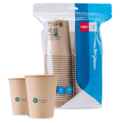自營得力19207 一次性紙杯 250m竹纖維本色杯子/水杯 加厚隔熱 50只/袋